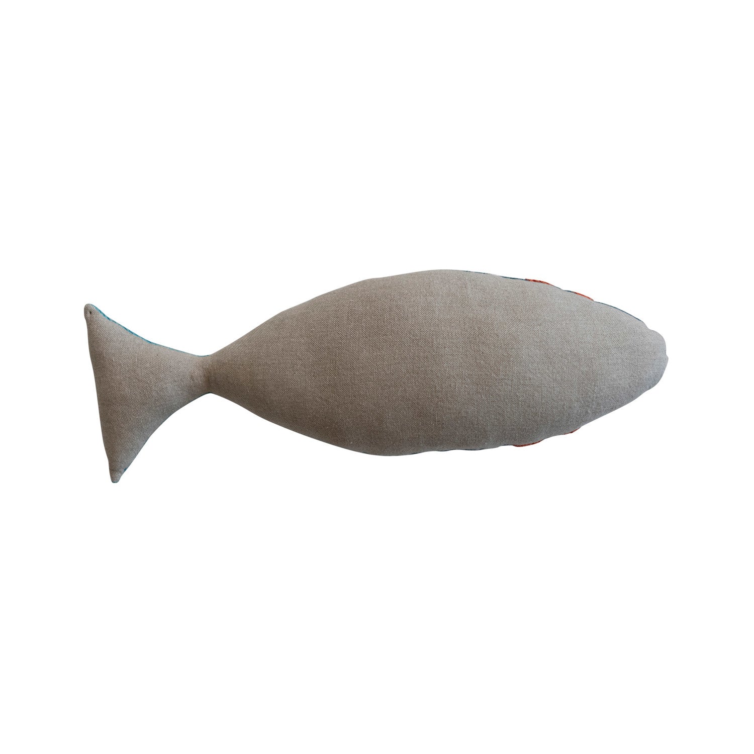 Fish Pillow - 14'L x 3'H Embroidered Cotton