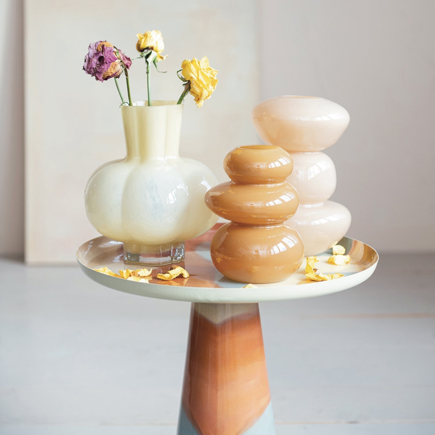 This Camel Hue Glass Vase is a masterpiece of subtle elegance, with dimensions of 5.75 inches in length, 5.5 inches in width, and 7.5 inches in height. 5-3/4'L x 5-1/2'W x 7-1/2'H Glass Organic Shaped Vase, Opaque Camel Color