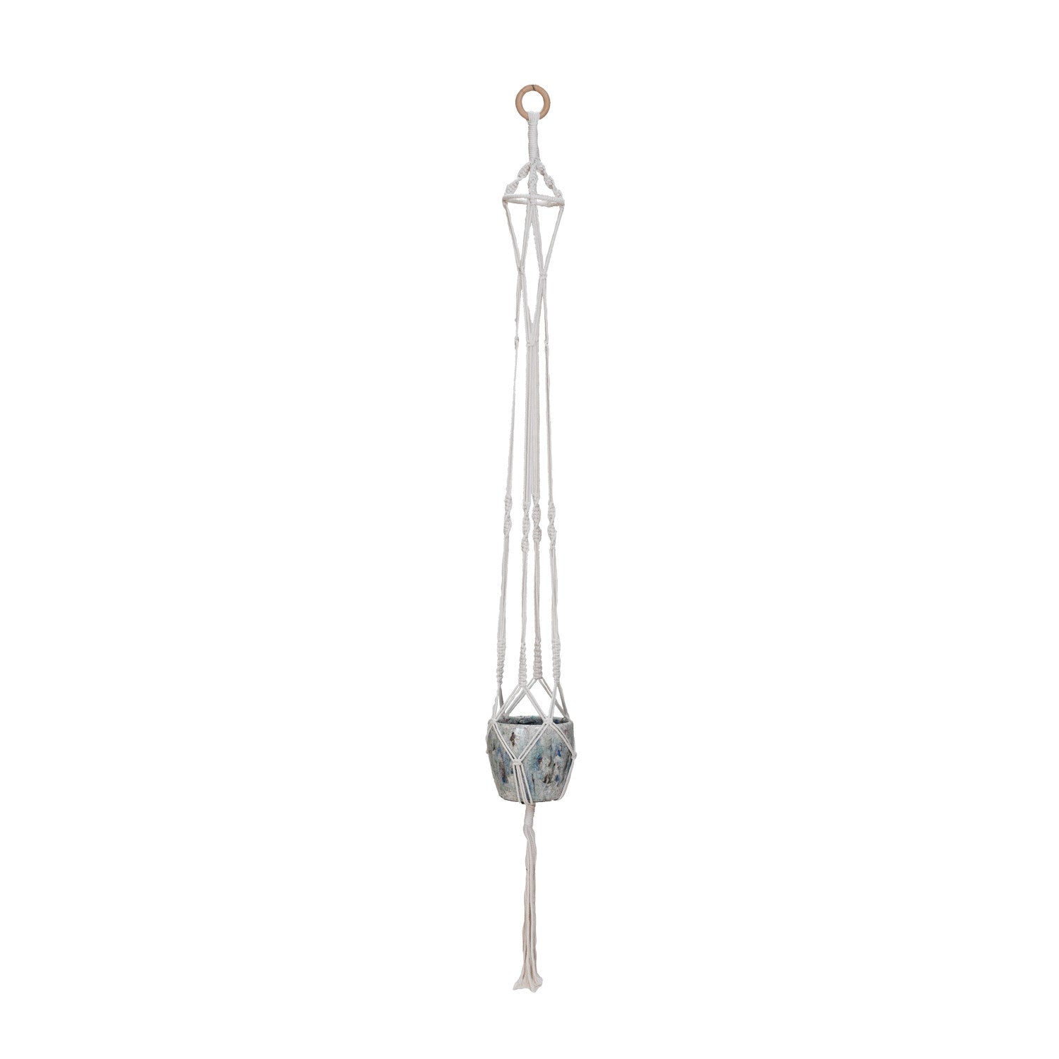 2' Round x 57'H Cotton Macrame Plant Hanger w/ Wood Ring
